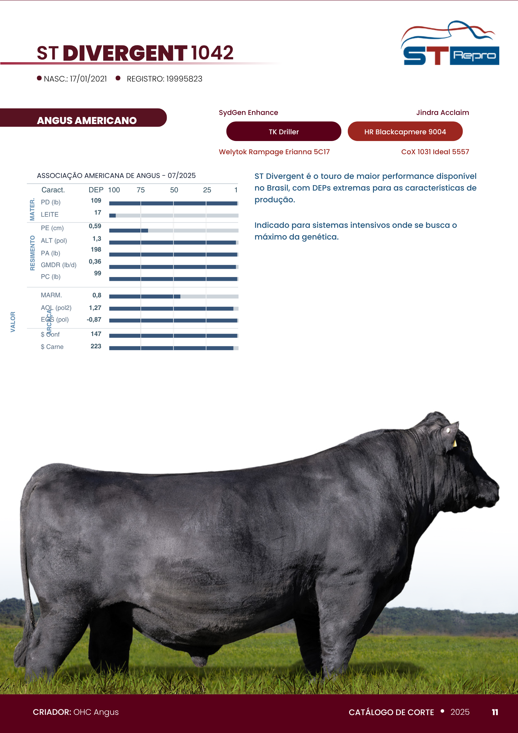 ST Divergent é o touro de maior performance disponível no Brasil, com Dep's extremas para as características de produção.