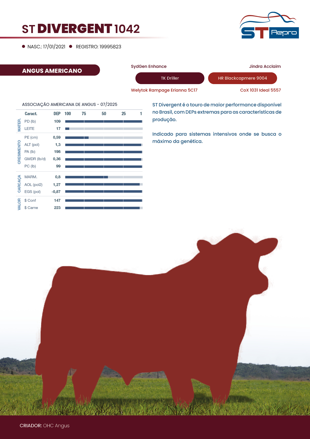 ST Divergent é o touro de maior performance disponível no Brasil, com Dep's extremas para as características de produção.